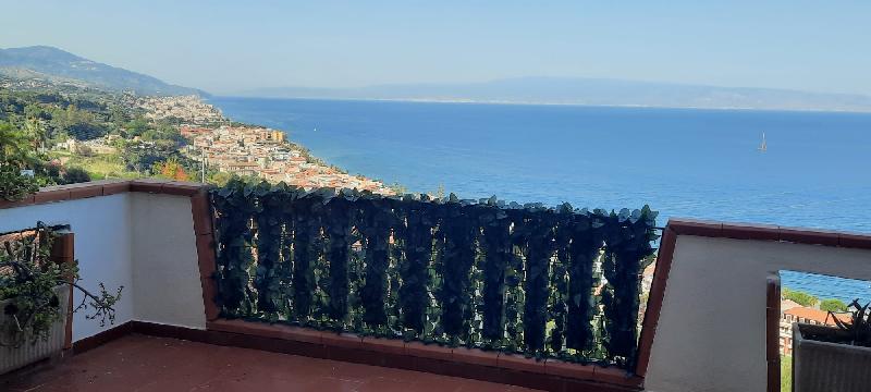 Nel comune di Sant’Alessio Siculo all’interno del residence “Sant’Alessio Village” con spedito panorama dell'incantevole baia di Sant'Alessio e del castello, a 1 km dal mare, proponiamo in affitto per brevi periodi, per max 4 persone, una villetta a schiera su due livelli, con due accessi indipendenti, così composta: al primo piano si trova la zona notte con un piccolo disimpegno, due panoramiche camere da letto matrimoniali, di cui una dotata di aria condizionata, un bagno finestrato con vasca; al piano terra si sviluppa la zona giorno con cucina a vista, secondo bagno finestrato con doccia, luminoso soggiorno-pranzo da cui si accede ad un ampio terrazzo. La cucina è servita da un altro terrazzo semicoperto.. I due livelli sono collegati da una comoda scala interna in legno e ferro. Nel raggio di pochi chilometri dall’immobile è possibile raggiungere le note località di Taormina, Letojanni, Giardini Naxos, così come Santa Teresa di Riva e Savoca.